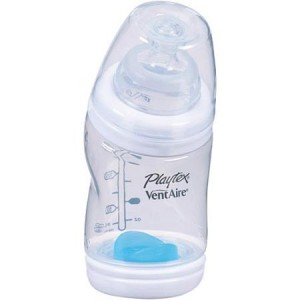 The Playtex VentAire combines vents with an angled bottle to “promote semi-upright feeding” to help avoid ear infections.