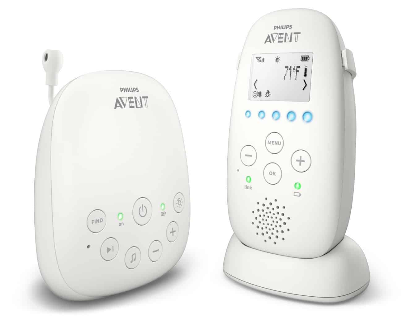 After trying out several dual parent unit audio-only monitors, we think the best bet is VTech’s DM221-2. Even though it looks different compared to the DM111 unit recommended above, it has much the same specs. The biggest difference: a LCD screen that shows battery and signal strength.