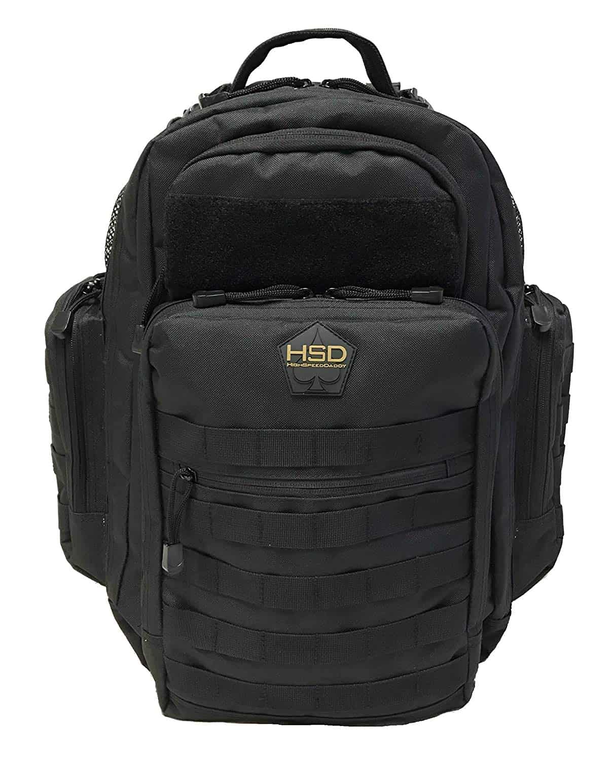 HSD Diaper Bag Backpack + Changing Pad, Insulated Pockets, Stroller Straps for The Tactical Dad (Black)