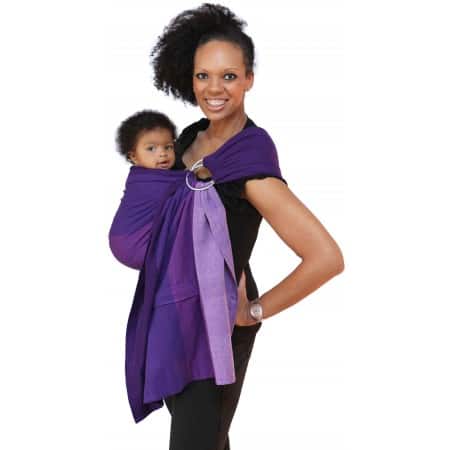 Maya Wrap has consistently been a favorite of our readers, who love its flexibility and comfort. Helpful instructional videos are available on their web site and a DVD is included with your purchase. The rings are made of ¼” anodized aluminum, the fabrics are 100% cotton hand-loomed and are only made of one layer of fabric. As a result, the Maya Wrap sling carrier is quite lightweight and breathable. It comes in four sizes with nearly 20 fabric options.