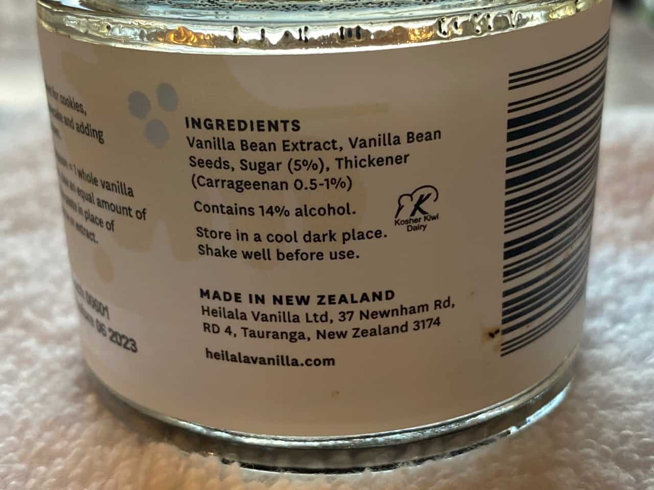 • Ingredients: vanilla extract, sugar, inulin (starch), vanilla seeds, gum tragacanth (thickener).