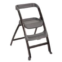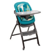 The Symmetry Elite ($80) is Evenflo’s more standard high chair with an “ultra-slim fold” down to 8″, a machine washable seat pad, dishwasher safe tray liner (but don’t put the tray in the dishwasher), two recline positions and three tray positions. All that for a mere $70 (less online). Parents tell us they like the Symmetry, although a few dissenters said the quality of the chair is sub par. At this price, it might be a great option for grandma’s house.