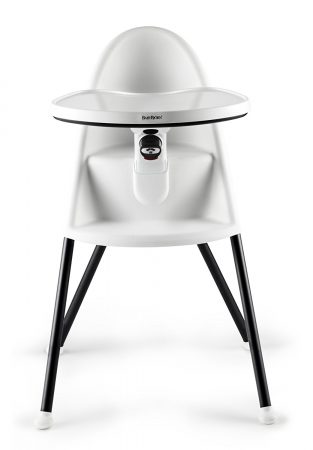 The Bjorn high chair has all the the Swedish minimalist design you’d expect from a Bjorn—the white/black color motif, seamless seat design and so on. It is also available in red and black. Of course, Bjorn hasn’t forgotten about safety: the high chair features a “Smart Safety Lock,” which is a two-stage lock that Bjorn says “ensures that children cannot open or close the safety table on their own.” This is probably the Bjorn’s most unique feature: the tray pivots down to enable a parent to put a child in or out of the chair. That differs from other high chairs, where the entire tray is removable–or the tray slides forward to let you move a child in or out.