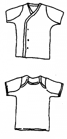 How many? T-shirts usually come in packs of three. Our recommendation is to buy two packages of three (or a total of six shirts) of the side-snap variety. We also suggest buying two packs of over-the-head t-shirts. This way, if your baby does have an allergy to the snaps, you have a backup. Later you’ll find the snap-at-the-crotch t-shirts to be most convenient since they don’t ride up under clothes.