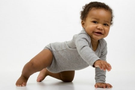 ◆ 6-12 months: Finally, your baby is crawling, standing, maybe even cruising. At the end of a year she’s likely tried those first tentative steps! Play clothes are a layette mainstay during these months. You’ll also need good, no-skid socks that stay on. You may find you’re buying into the 18-month sizes.